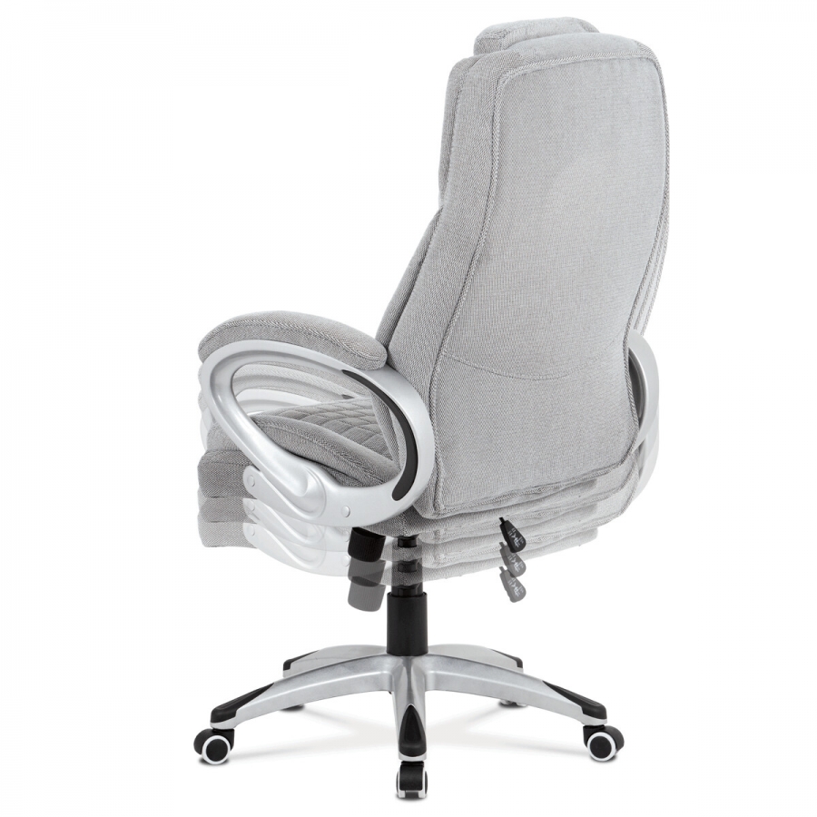 Moderní kancelářská židle, kancelářské křeslo šedá, kříž plast stříbrný, houpací mech. KA-G196 SIL2 potažená pololesklou šedostříbrnou látkou vzor pepito. Díky ultra pohodlnému sedáku a opěráku s výjimečným polstrováním, které jsou stylově tvarované, s elegantním prošitím a se super měkkým podhlavníkem se budete cítit jako v business class nejlepší letecké společnosti. K pohodlí přispívají i pevné plastové područky stříbrné barvy s černými plastovými doplňky a polstrováním potaženým extra jemnou látkou. Židle má také i snadno omyvatelný plastový kříž stříbrné barvy s černými protiskluzovými prvky a plastovými kolečky vhodnými na tvrdé povrchy. Je výškově nastavitelná a s houpacím mechanismem a její nosnost je až 120 kg. Látku čistit výhradně šamponováním běžnými čistícími prostředky za použití měkkého materiálu (houbička, hadřík). Nečistit hrubými materiály (kartáč, apod.). Nikdy nepoužívat chemická rozpouštědla. Látku nevystavujte přímému slunečnímu záření. Veškeré nečistoty je třeba odstraňovat ihned po ušpinění. Pozdním čištěním se úspěšnost zákroku výrazně snižuje. Látku nevystavujte přímému slunečnímu záření.