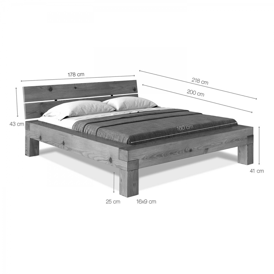 Postel z masivu 160x200 CURBY HB1592G, materiál masiv smrk, lakované provedení rustikální texturovaný povrch dělené čelo postele , cena bez roštu a matrace, výška čela 43 cm minimální doporučená výška matrace 15 cm doporučený rozměr matrace 160 × 200 cm nebo 2 kusy 80 × 200 cm a rošt R2 doporučená nosnost do 120 kg na každé polovině postele