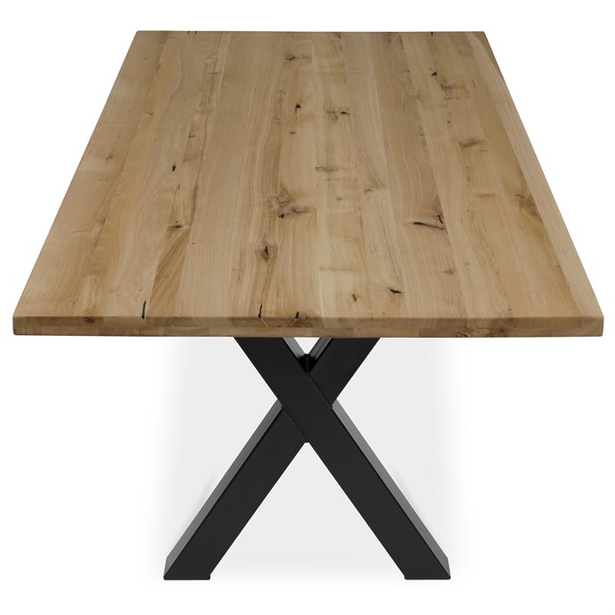 Objevte ztělesnění luxusu s jídelním stolem pro 4, 6 nebo 8 osob 200x100x75 masiv dub kovové podonoží X černý lak DS-X200 DUB , ve kterém snoubíme vkusnost s užitkem. Stůl vyrobený z masivu a fascinující hnědý dekor dubové desky umocňují přirozený odstín nábytku a vnesou do jídelny zářivý lesk. Matná povrchová úprava, která je důkazem pozornosti věnované detailům, udělá nezapomenutelný dojem. Funkčnost stolu zakončená robustními kovovými nohami v atraktivní černé zůstává nekompromisní. Obdélníkový tvar nabízí dostatek prostoru a vyhoví všem požadavkům. Spojení industriálního stylu s konzervativním šarmem splňují příslib, že jídelní stůl 200x100x75 masiv dub kovové podonoží X černý lak DS-X200 DUB zapadne do místnosti a přitom z něj budete cítit jeho přítomnost. Deska vyrobená z masivu představuje designový vrchol. Volbou výrobku se rozhodnete pro dlouhou životnost a odolnost ve vkusně zpracovaném průmyslovém designu, který stojí jako nadčasový doplněk. Dopřejte si sofistikovanou kombinaci odolnosti a elegance – dobré jídlo si žádá skvělý jídelní stůl.