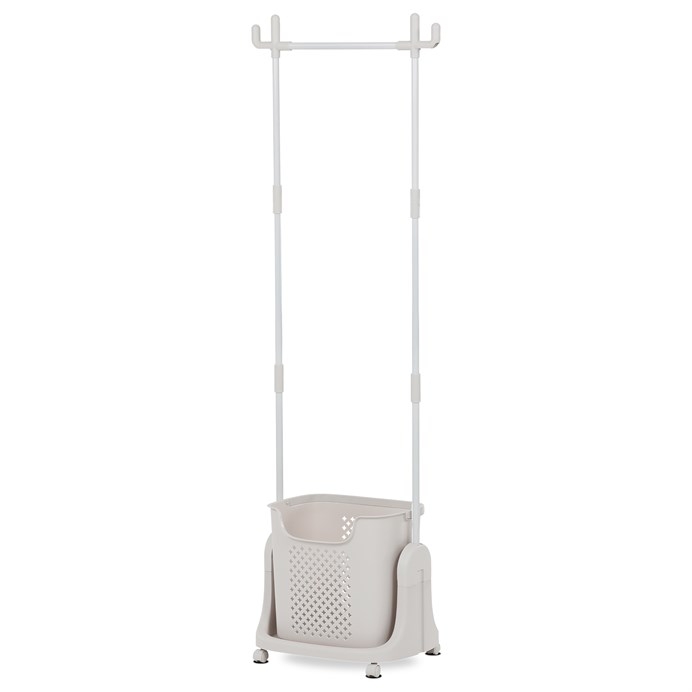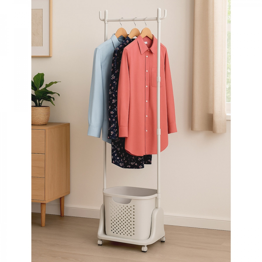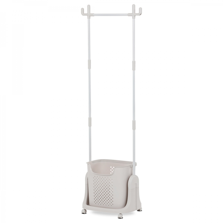 Praktický Stojanový věšák s košem na prádlo béžový plast GD-186 BGE na šaty s košem na prádlo je dokonalým spojením funkčnosti a elegance. Bílá konstrukce z kvalitního plastu je lehká, stabilní a snadno udržovatelná. Horní část nabízí dostatek prostoru pro zavěšení oblečení, zatímco spodní integrovaný koš na prádlo slouží jako praktický úložný prostor. Díky kolečkům je věšák snadno přemístitelný a hodí se do předsíně, ložnice nebo koupelny. Minimalistický design v bílém provedení zapadne do každého interiéru a usnadní organizaci vašeho domova.