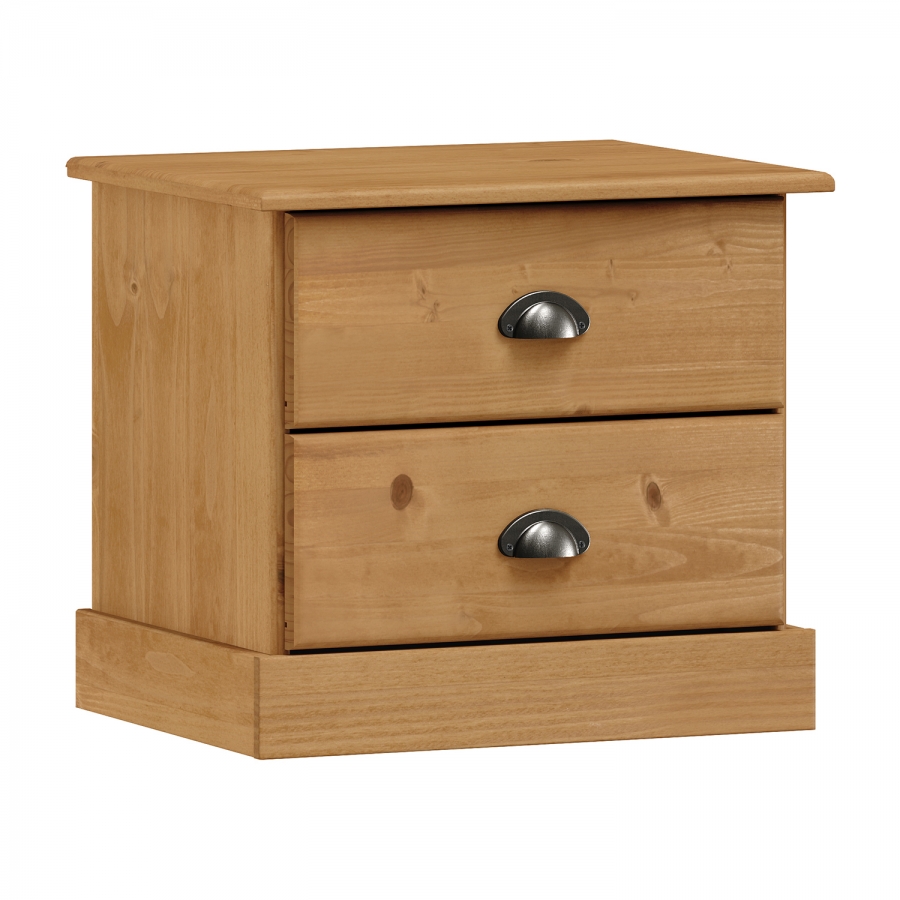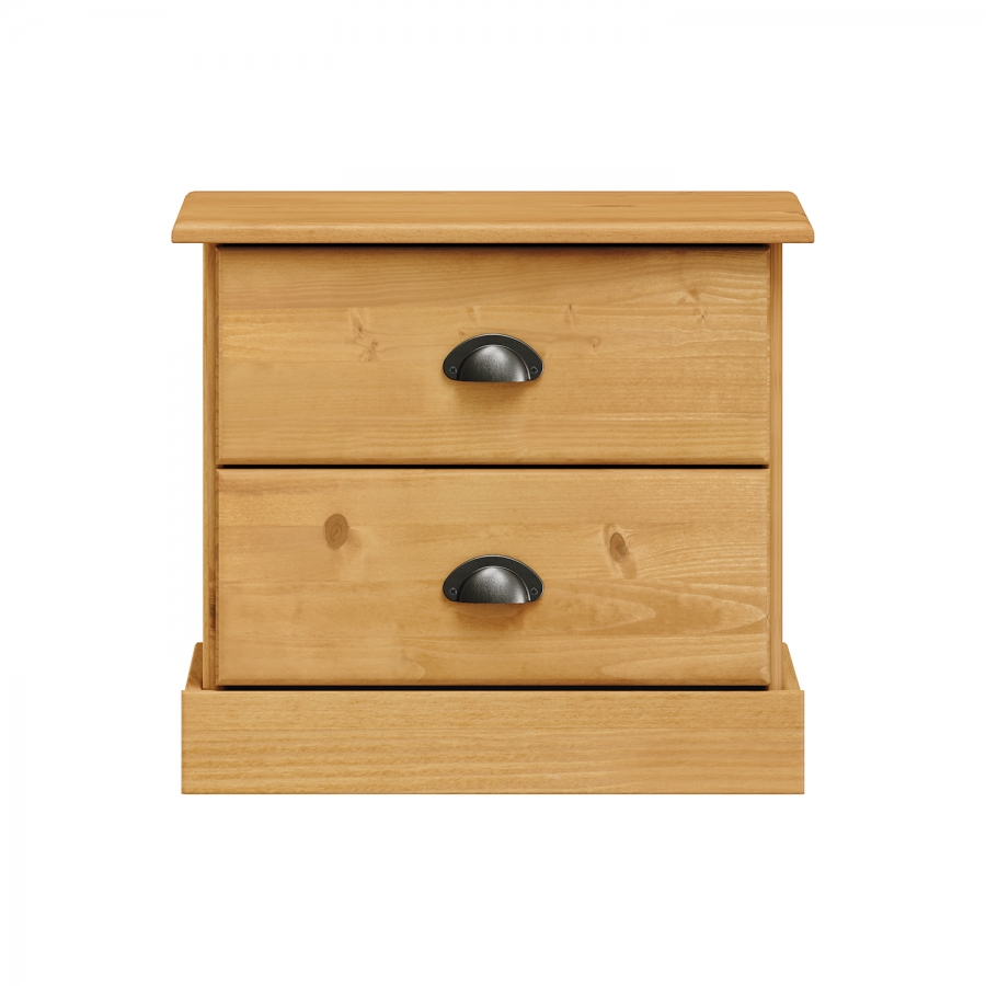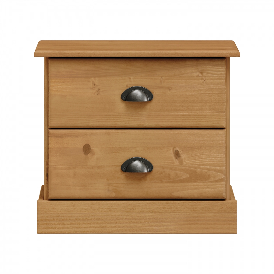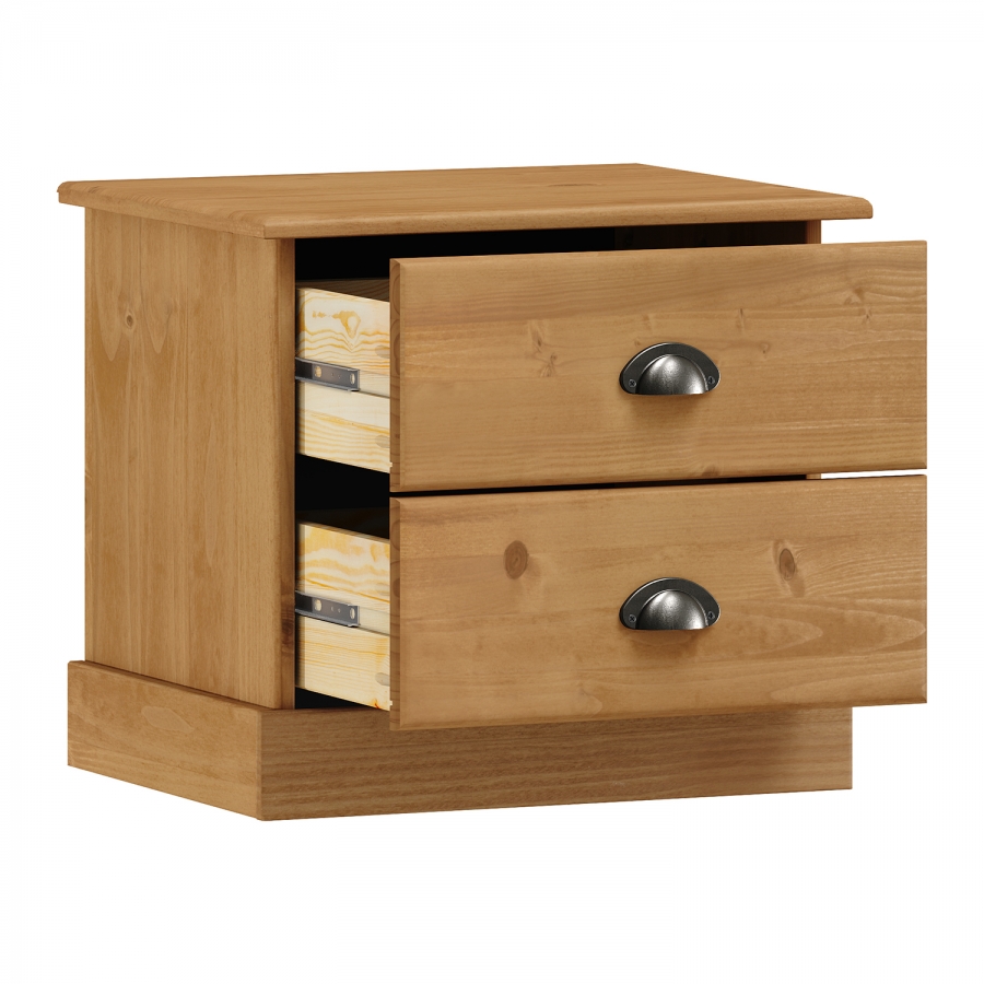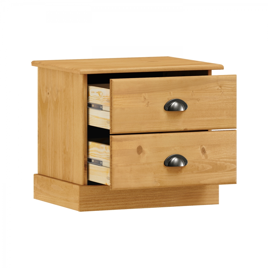 Noční stolek masiv borovice med vosk STANFORD, materiál masiv borovice voskovaná v medovém odstínu 2 zásuvky s kovovými úchytkami a pojezdy