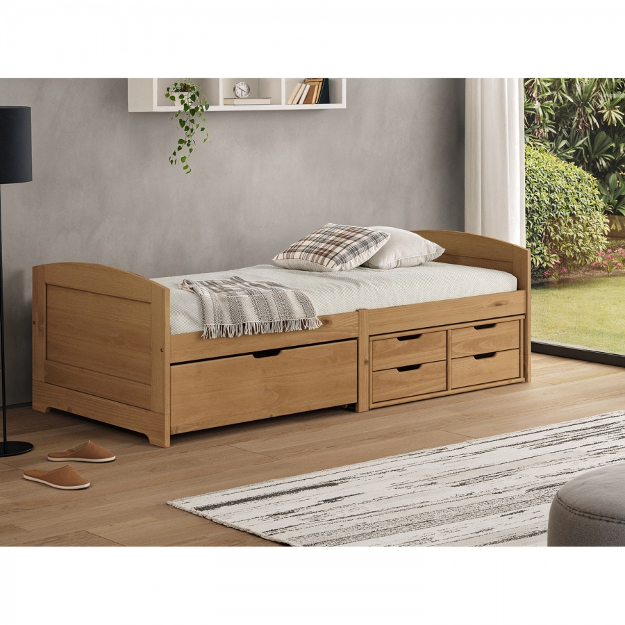 Postel 90x200 masiv borovice jednolůžko se zásuvkami MARY voskovaná, materiál masiv borovice, voskované provedení praktické úložné prostory pod postelí (zásuvky) v ceně cena včetně roštu (dřevěný laťkový), matrace není v ceně doporučený rozměr matrace 90 × 200 cm