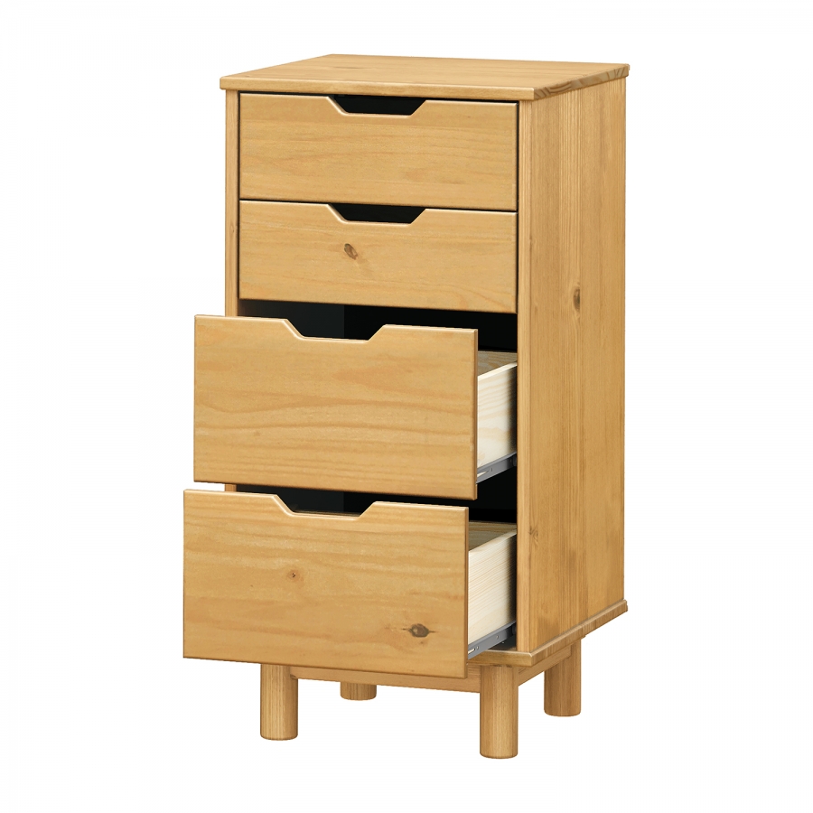 materiál masiv borovice voskovaná v medovém odstínu 2 menší a 2 větší zásuvky s kovovými pojezdy