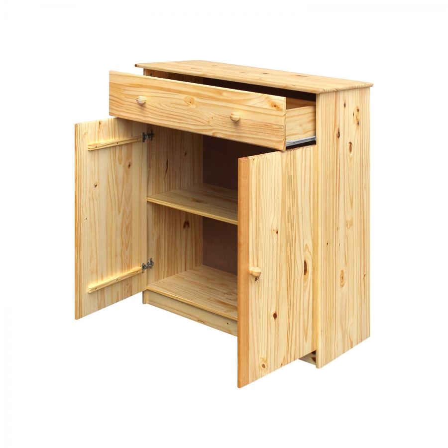 Komoda z masivu s dvířky 824, lakovaná. Opravdu velká komoda s dvojicí vnitřních poliček, dveří a zásuvkou. Skvěle uschová oblečení dvou nenáročných lidí a navíc vydrží při dobrém zacházení i po mnoho let díky své pevné konstrukci z borovicového masivu. Pasuje do obytných místností i ložnic. Komody z masivu jsou ideálním kusem nábytku téměř do každé místnosti, univerzální vzhled a dlouhá životnost našich komod vám zaručí dostatek úložných prostor kdekoli si budete přát. Vaše ložnice se tedy může stát levně tou nejútulnější místností ve vašem domově právě díky našemu nábytku.